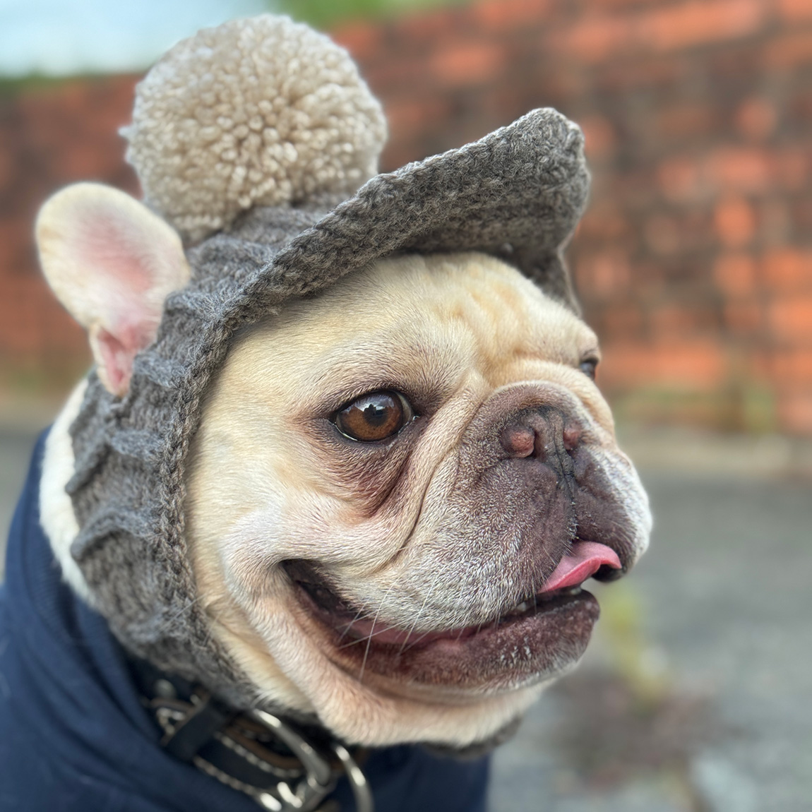 サイズはフリーサイズで網目をボタンに掛ける仕様ですので殆どのフレンチブルドッグ、パグちゃんにフィットします
